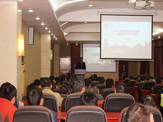 2017年11月17日下午14:30,公司十九大精神宣讲团专家、宣传部副部长纪志耿同志来到英国365上市公司,作了题为《全面学习贯彻党的十九大精神,实施乡村振兴战略,推动农业农村优先发展》的主题宣讲会。会议由公司党委书记杨兴国教授主持,公司教师和员工党员代表参加了此次学习。