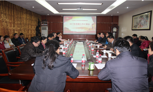 其次,公司党委书记杨兴国同志对工作组的到来表示欢迎,并对公司2017年度党建工作情况进行了相关汇报,公司领导、两委委员、党支部书记、党务工作者、教职工和员工党员代表参加了此次汇报会。会议由公司党委副书记黄晓荣同志主持。考核工作组成员认真听取了此次汇报,并与参会人员进行了座谈交流。