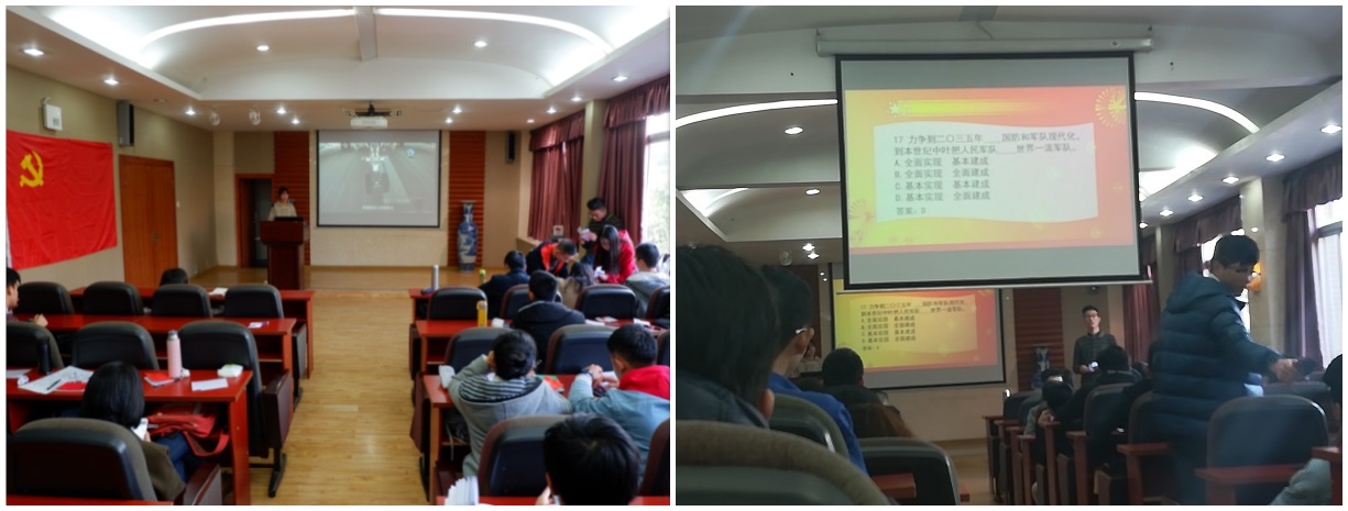 为贯彻落实党中央关于深入学习贯彻十九大会议精神的要求,推动十九大精神学习工作在全院员工中广泛开展,在公司党委的指导下,水电公司员工党支部联合组织 “学习十九大精神”知识竞赛。本次知识竞赛于2017年12月8日下午2点30分在水电大楼A311举办。本科2014级生党支部,本科2015级生党支部、研究生党支部成员均参与本次知识竞赛。研究生兼职辅导员文艳琳老师、17级兼职辅导员胡正红老师作为特邀嘉宾也积极参与知识竞赛互动。