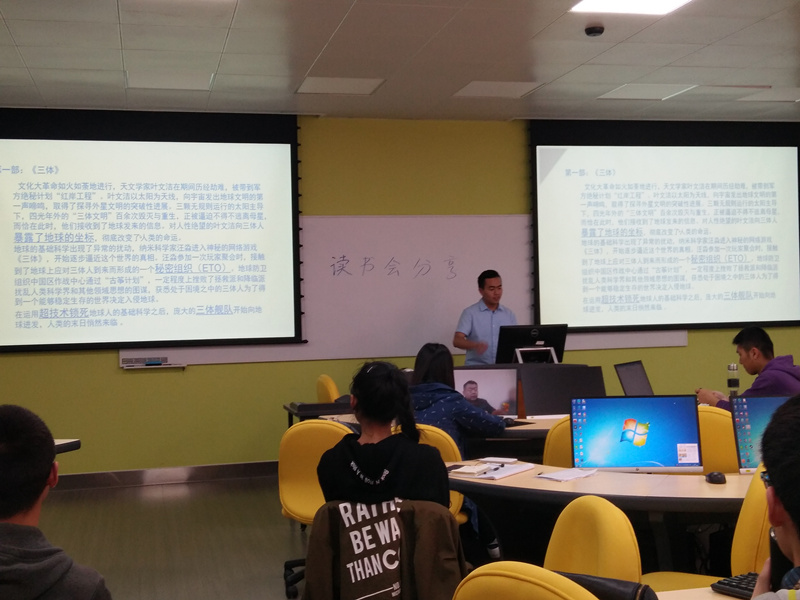 读书会第二位分享人是梁山同学,他带来了《秒速五厘米》。他引用书中的话:如果,樱花掉落的速度是每秒5厘米,那么两颗心需要多久才能靠近?青涩的爱情故事让听众会心一笑,也让部分同学感同身受,似乎故事讲的不是贵树,明里,澄田,水野之间的故事,而是自己的,讲述自己那懵懵懂懂的初恋,青春中无疾而终的感情。被《三体》故事刺激到的心灵稍微得到了一点的安抚,也让同学们更加认真思考如何更加慎重对待自己的感情。