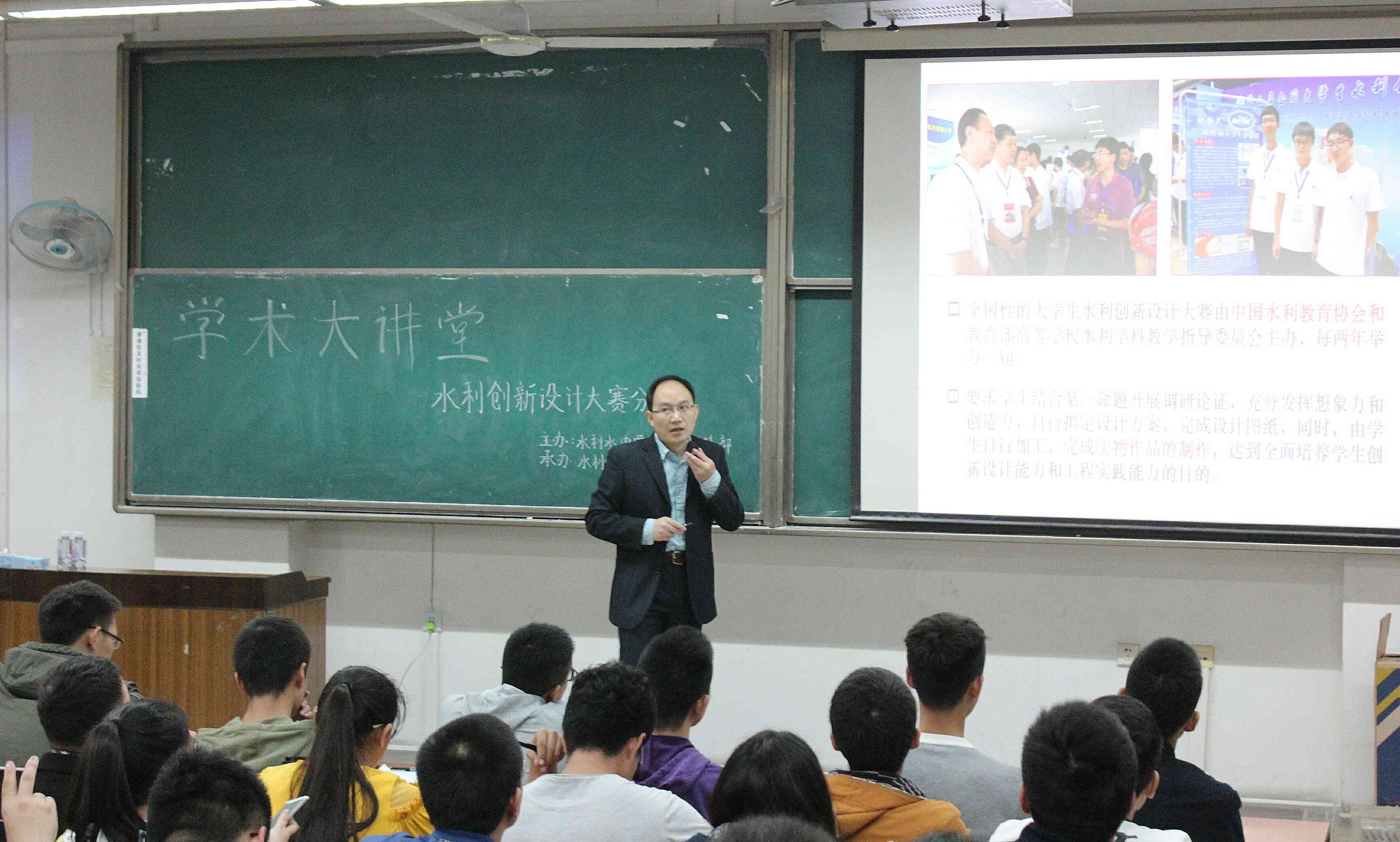 2017年10月20日14时,江安校区一教B501教室座无虚席,由英国365上市公司学术科技部主办的学术大讲堂之“水利创新设计大赛分享会”在此举行。本次主讲嘉宾是水利水电工程系教授、硕士生导师李洪涛教授,参加本次分享会的还有团委书记李亮老师。