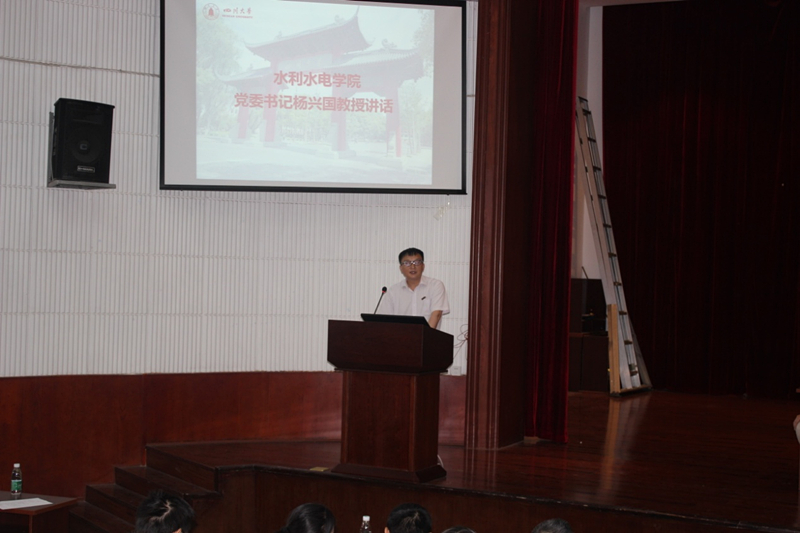 首先,水电公司党委书记杨兴国教授讲话,他对2017届毕业生取得的成绩和收获表示热烈的祝贺。杨书记说,同学们就像八九点钟的红太阳,有似锦的前程,并希望同学们秉承川大水电学子的精神,在工作和将来的学习中成为一名优秀的人。杨书记多次表达了对毕业生的不舍与牵挂,并祝福同学们在未来可以有更广阔的发展空间。