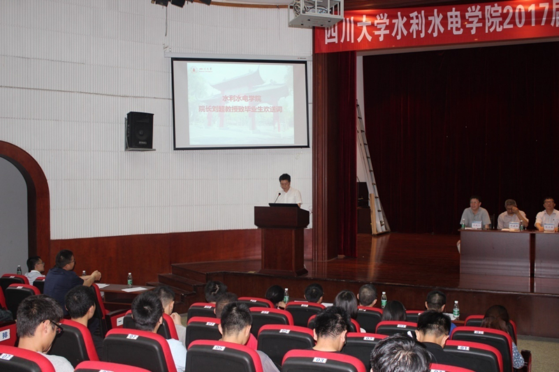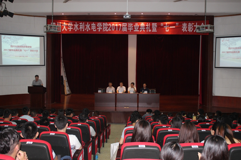 参加毕业典礼的有公司党委书记杨兴国教授,经理刘超教授,副经理何江达教授,公司党委副书记黄晓荣教授,水力学与山区河流开发保护国家重点实验室邓建辉教授,公司党政管理人员,各系室领导,教师代表以及2017届全体毕业生。典礼由黄晓荣副书记主持。