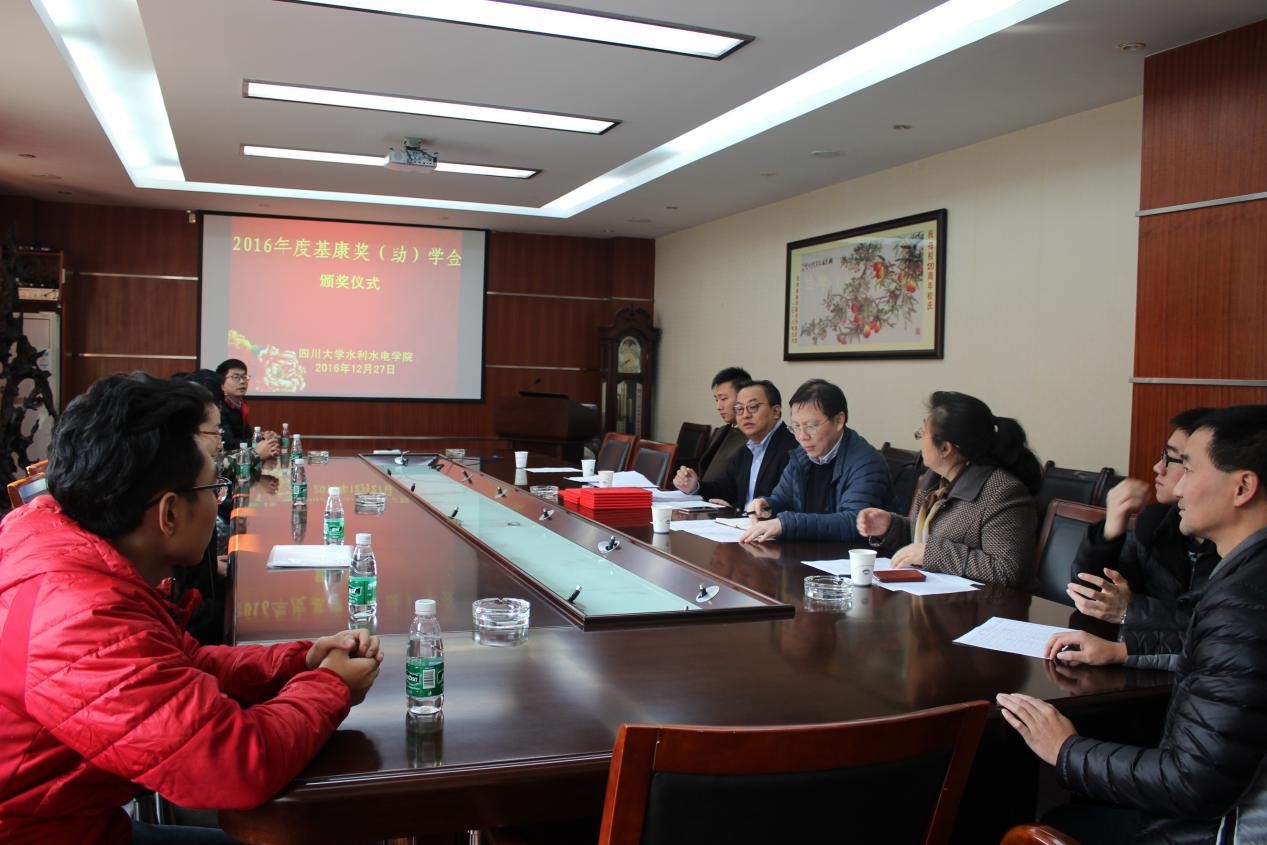 下午两点半颁奖仪式准时召开。首先,黄晓荣副书记代表公司欢迎了基康仪器(北京)有限公司领导们的到来,并表示了对该公司在公司设置奖助学金的感谢,同时简要介绍了公司近年的教学情况及奖学金的评选情况。