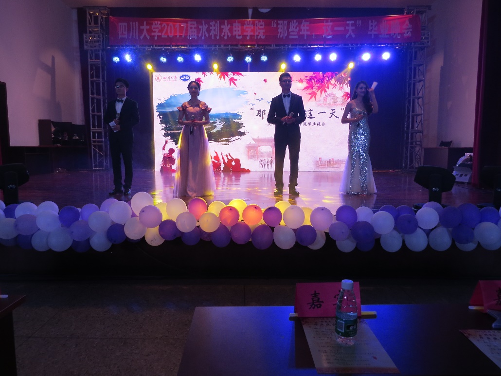 2017年6月8日晚7:30,在水电大楼C201演播厅隆重举行了2013级本科生及2014级硕士研究生--“那些年,这一天”毕业晚会。受邀教授及公司全体员工参加晚会。毕业典礼由2013级本科毕业生周蓓,张冲和2014级硕士毕业生肖珍珍、刘斌4人主持。