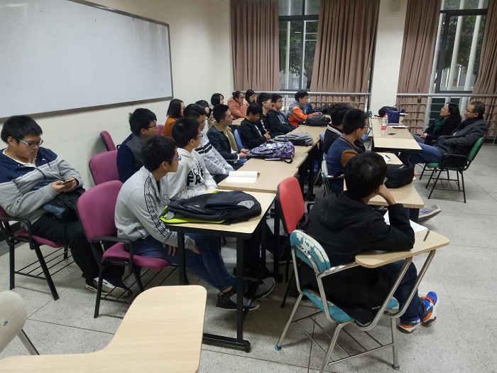 2016年11月21日下午4:40点,在江安综合楼B座106教室,能源与动力工程系党支部书记刘华和教师刘洪涛,与能源与动力工程系一班全体同学开展半期师生座谈会。