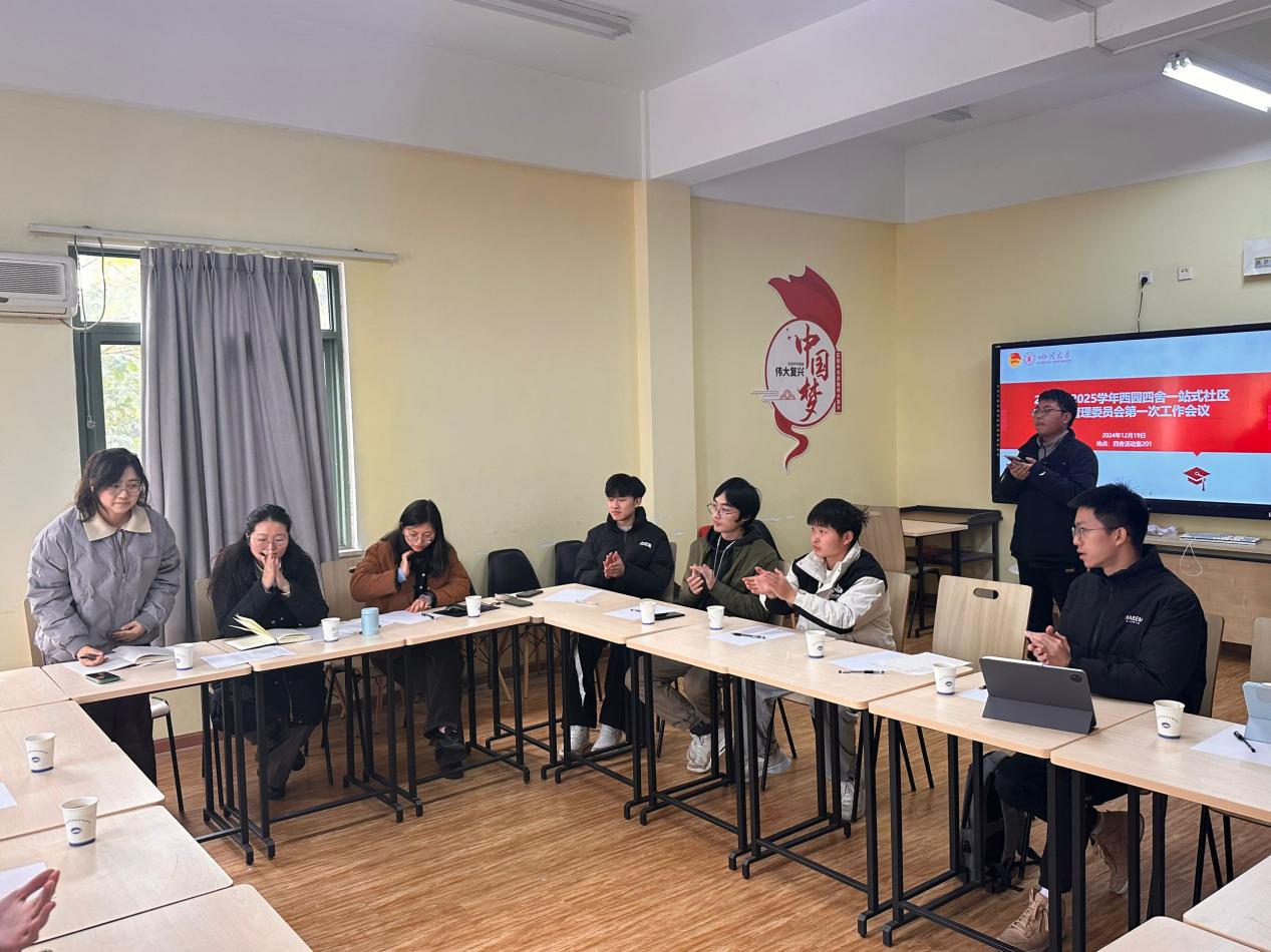 2024 年 12 月 19 日,江安西园四舍一站式社区围合管理委员会在四舍活动室 201 举行了本学年第一次工作员工骨干会议。