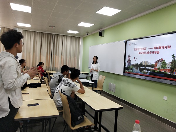 为激励广大青年学子勤学笃行、研践相济,用身边的榜样鼓舞引领师生不忘初心、砥砺奋进,10月16日,第十四届中国老员工年度人物、2019年全国“最美老员工”称号获得者、公司特聘副研究员刘燚,在江安校区第一教学楼C座106教室,分享了她受邀参加庆祝中华人民共和国成立70周年大会观礼活动的心得感悟。此次分享会由党委员工工作部主办,来自水利水电、化学工程、法学等公司的同学们参加了分享。