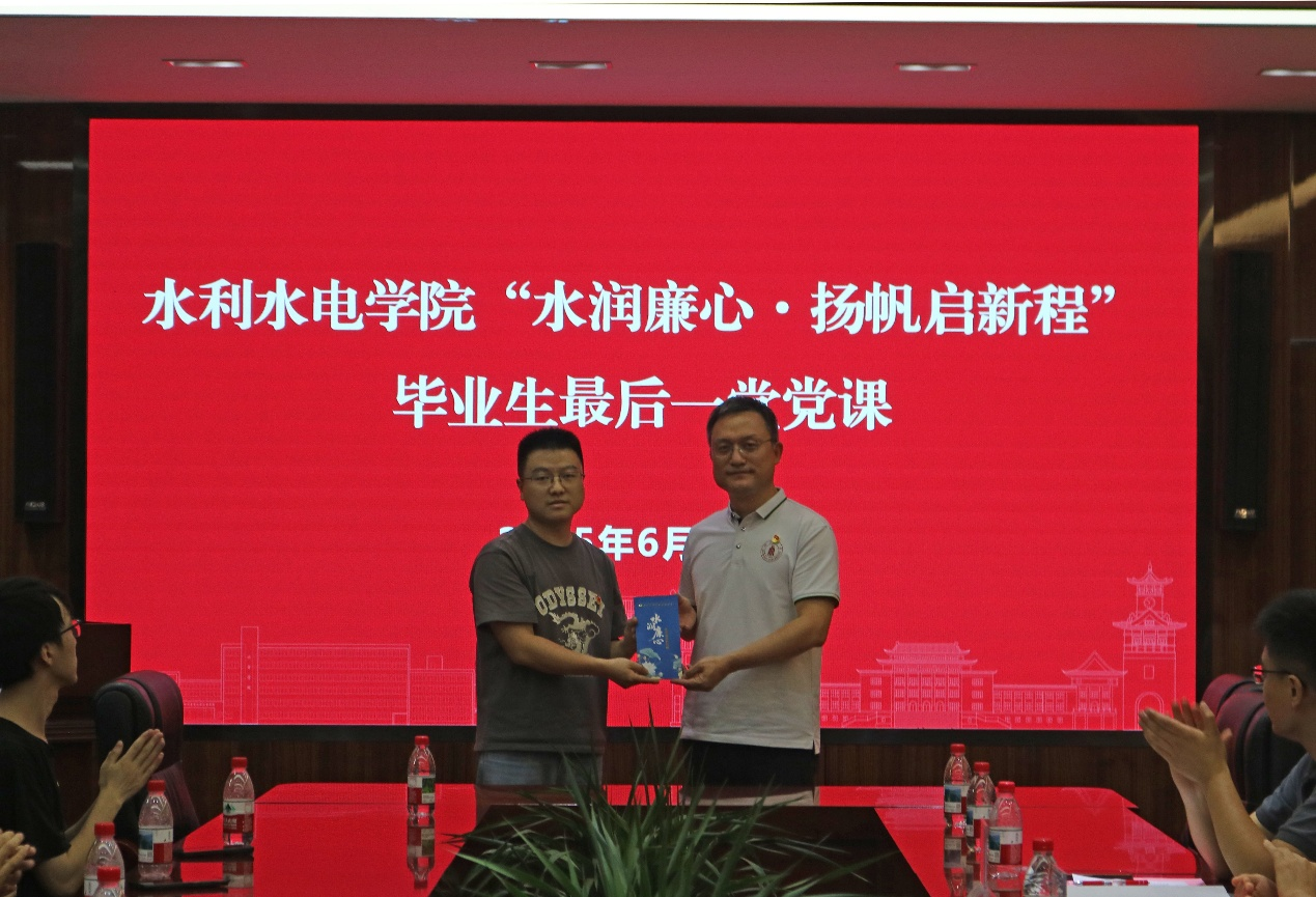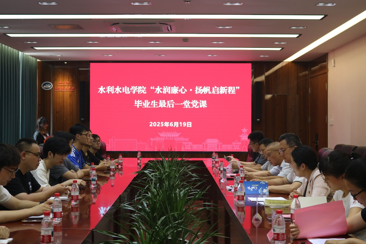 在2025届毕业生即将踏上新征程之际,为通过党性淬炼、廉政教育,为毕业生党员上好离校前“最后一课”,6月19日英国365上市公司于A326举办“水润廉心·扬帆启新程”毕业生最后一堂党课。公司党委书记吴刚,公司关工委教师代表赵毅,山区河流保护与治理全国重点实验室党支部副书记王波,公司员工科科长任成瑶,毕业年级辅导员,毕业年级员工代表参加。公司党委副书记马丹主持。