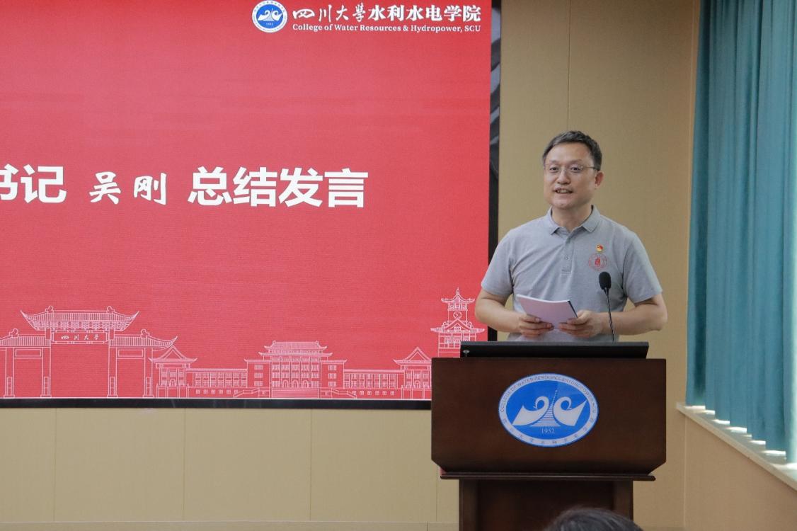 吴刚书记总结发言,他寄语全院师生,要积极强化党员廉洁风险防控意识,积极营造风清气正的政治生态;鼓励师生党员走出校园和相关企业交流,推动水电特色廉洁文化品牌“水润廉心”不断创新,将廉洁思想用青年学子喜欢的方式根植于青年群体中。