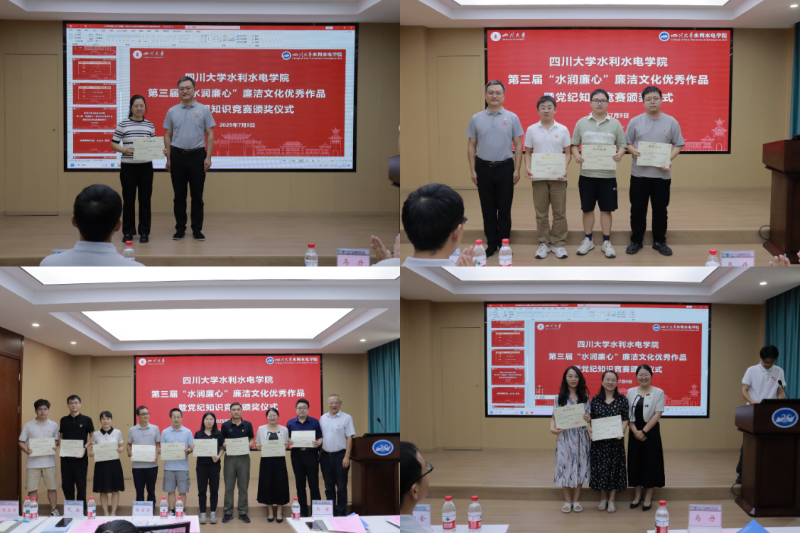 7月9日下午,公司举行第三届“水润廉心”廉洁文化优秀作品和党纪知识竞赛颁奖仪式。公司党委书记吴刚,党委副书记兼纪委书记马丹,专职组织员赵毅,工会副主席杨宝全,党支部代表以及获奖师生代表出席颁奖仪式。