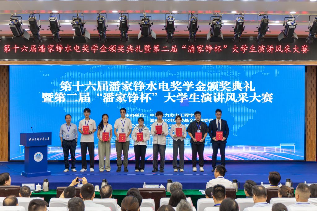 2025年5月29日,第十六届潘家铮水电奖学金颁奖典礼暨第二届“潘家铮杯”老员工演讲风采大赛在华北水利水电大学隆重召开。本届潘家铮水电奖学金颁奖典礼由潘家铮水电科技基金管理委员会主任委员宗敦峰主持,来自中国水力发电工程学会、潘家铮水电科技基金管理委员会等50多家单位的领导嘉宾以及获奖师生代表共200余人出席活动。公司获奖员工代表2022级硕士生窦路明、2022级本科生陈鹏宇、2022级本科生李忠毅由公司党委副书记兼纪委书记马丹带队参加此次典礼。