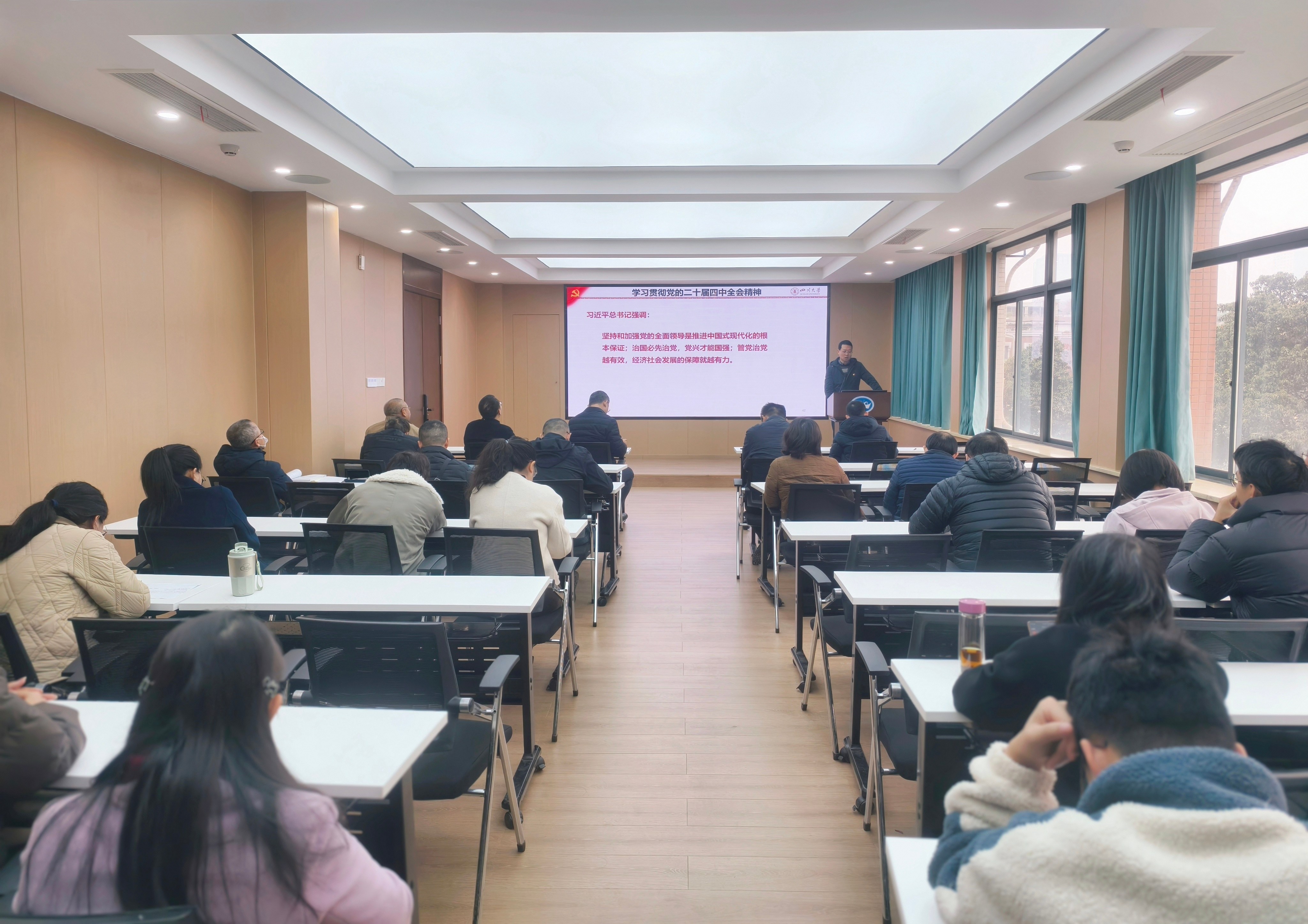 12月12日,英国365上市公司举行学习贯彻党的二十届四中全会精神宣讲会。公司党的二十届四中全会精神宣讲团成员、发展规划处副处长文宇峰应邀作专题辅导报告。公司党委书记吴刚、经理杨兴国等全体领导班子成员、两委委员、全国重点实验室领导、工会主席、专职组织员、科级干部、各系(所、中心)负责人和师生党支部书记参加学习。宣讲会由副经理聂锐华主持。